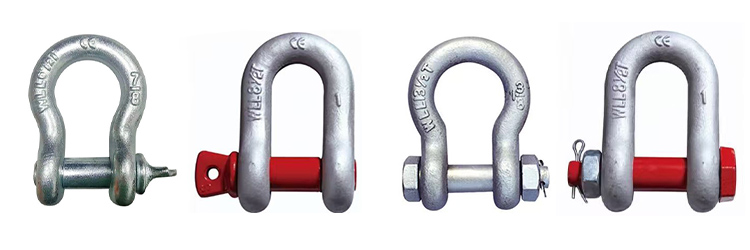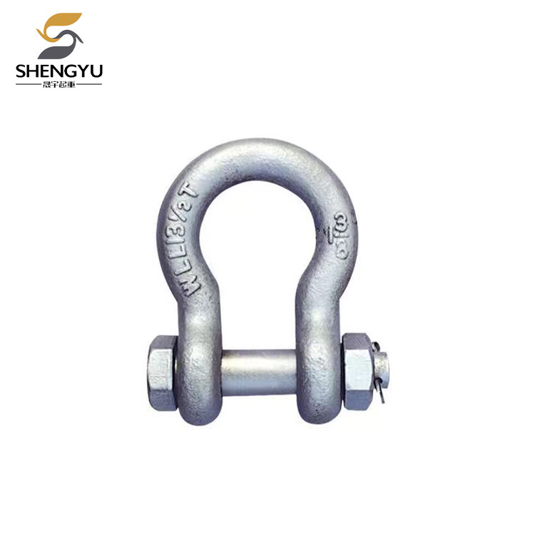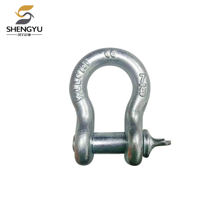 シャックルは吊り具の一種です。共通仕様には主にバウシャックルとDタイプシャックルの2種類があります。通常、建設、産業、輸送、吊り上げ、その他多くの用途でケーブル、チェーン、ロープを接続するために使用されます。シャックルを選択するときは、安全係数に注意を払う必要があります。一般的に、安全係数には 4 倍、6 倍、8 倍が含まれます。シャックルを使用する場合は定格荷重を厳守してください。過度に頻繁な使用や過負荷は許可されません。